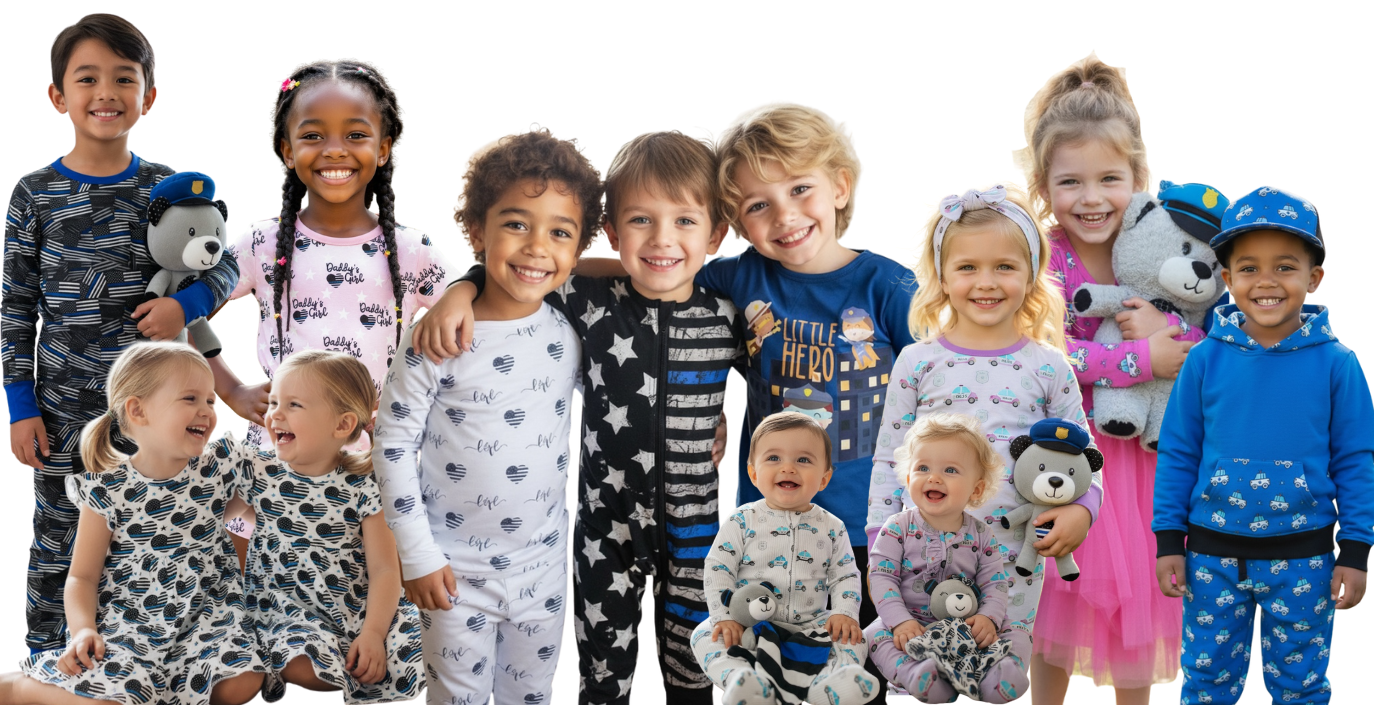 A collection of police-themed loveys and plush toys, including fan-favorite Blue Buddy....