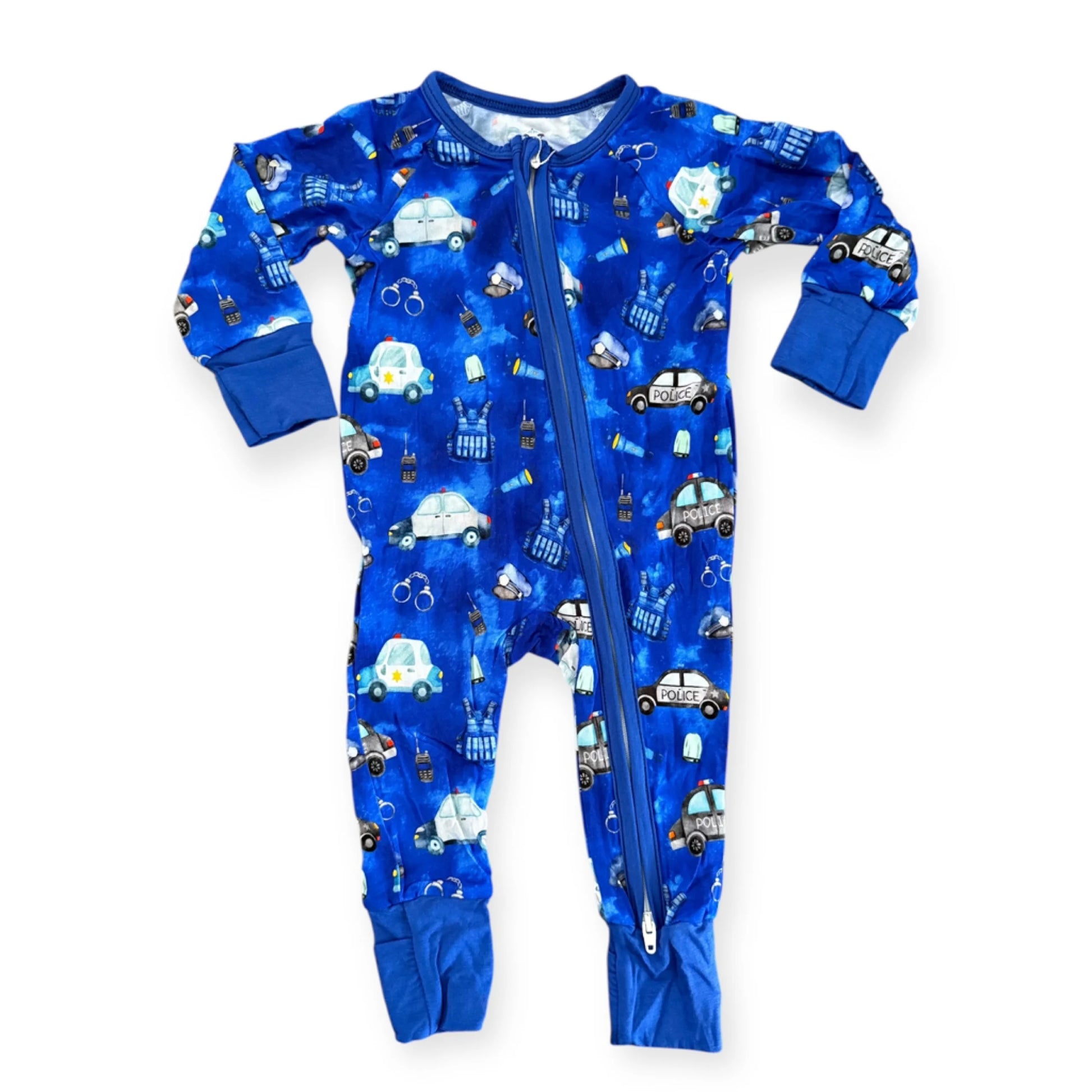 Super soft, comfortable, and adorable! Our unique one of a kind Law Enforcement “Comfy Cozies” Zip-Up will be your child’s favorite pajamas! 95% Bamboo viscose and 5% spandex that is extra soft for comfort and sensitive on skin. Featuring fold-over foot cuffs and mittens, and a double zipper for easy changing! No buttons, snaps, or interior tags!
