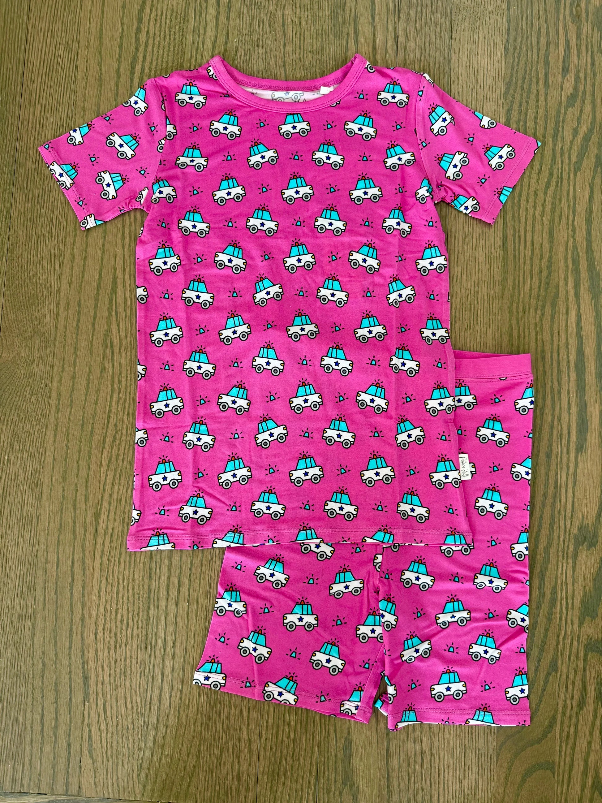 Our most-loved playful print "Ride Along" is now available in an adorable short sleeve + shorts pajama set, perfect for warm nights, playtime, and everyday lounging. Designed with comfort in mind and made from our signature buttery-soft bamboo blend, this set is lightweight, breathable, and gentle on sensitive skin.