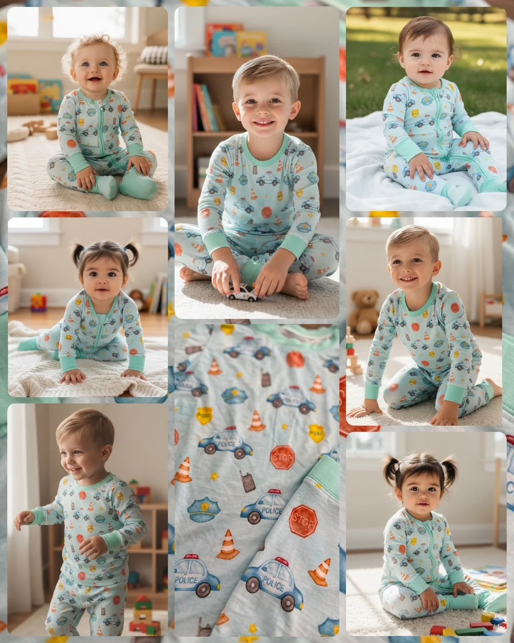 Super soft, comfortable, and adorable! Our unique one of a kind Law Enforcement “Comfy Cozies” Zip-Up will be your child’s favorite pajamas! 95% Bamboo viscose and 5% spandex that is extra soft for comfort and sensitive on skin. Featuring fold-over foot cuffs and mittens, and a double zipper for easy changing! No buttons, snaps, or interior tags!