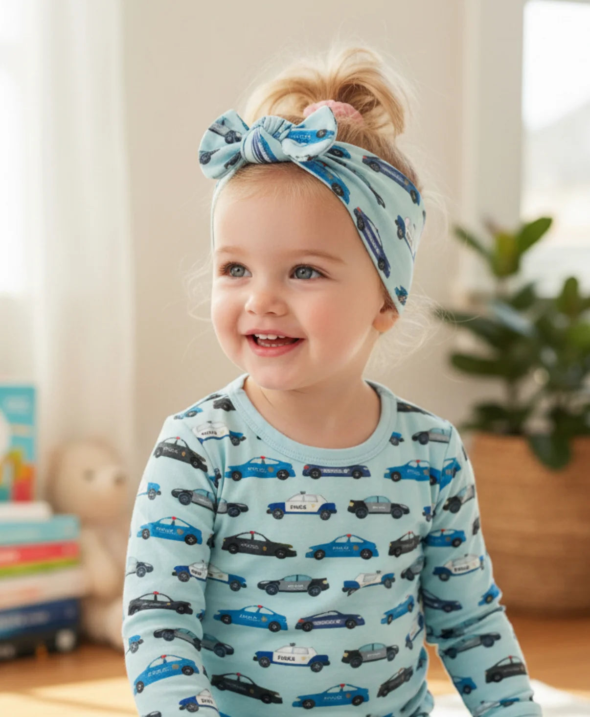 Unique Law Enforcement pattern baby girl’s headwrap made from Bamboo Viscose makes a perfect addition to your baby’s headband collection!