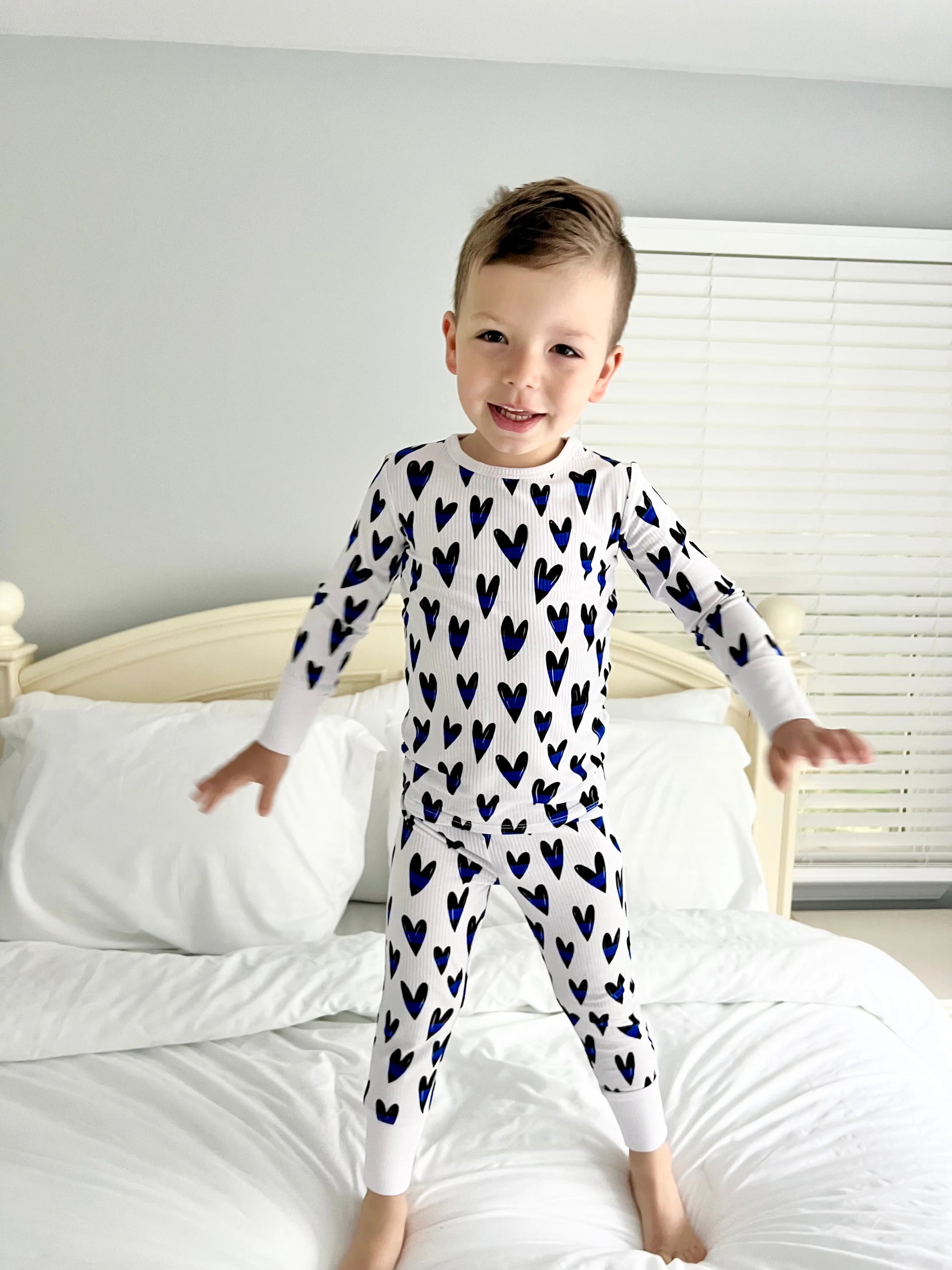 “Blue Line Hearts” Ribbed Two-Piece Comfy Cozies (Long)