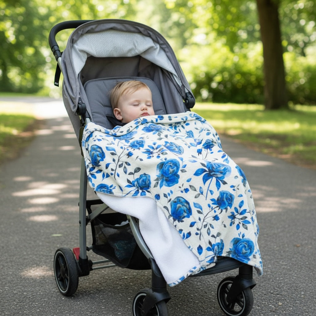 Our large 60x60” fleece cuddle blanket in “Blue Line Roses" pattern is perfect for couch cuddles, a stroller blanket, nap time, and more. Makes for a great throw blanket or a great background for photoshoots too! Comes in a clear bag wrapped with ribbon, gift-ready! Measures large at 60x60” (That's 5 feet!) ! Machine wash cold, tumble dry low