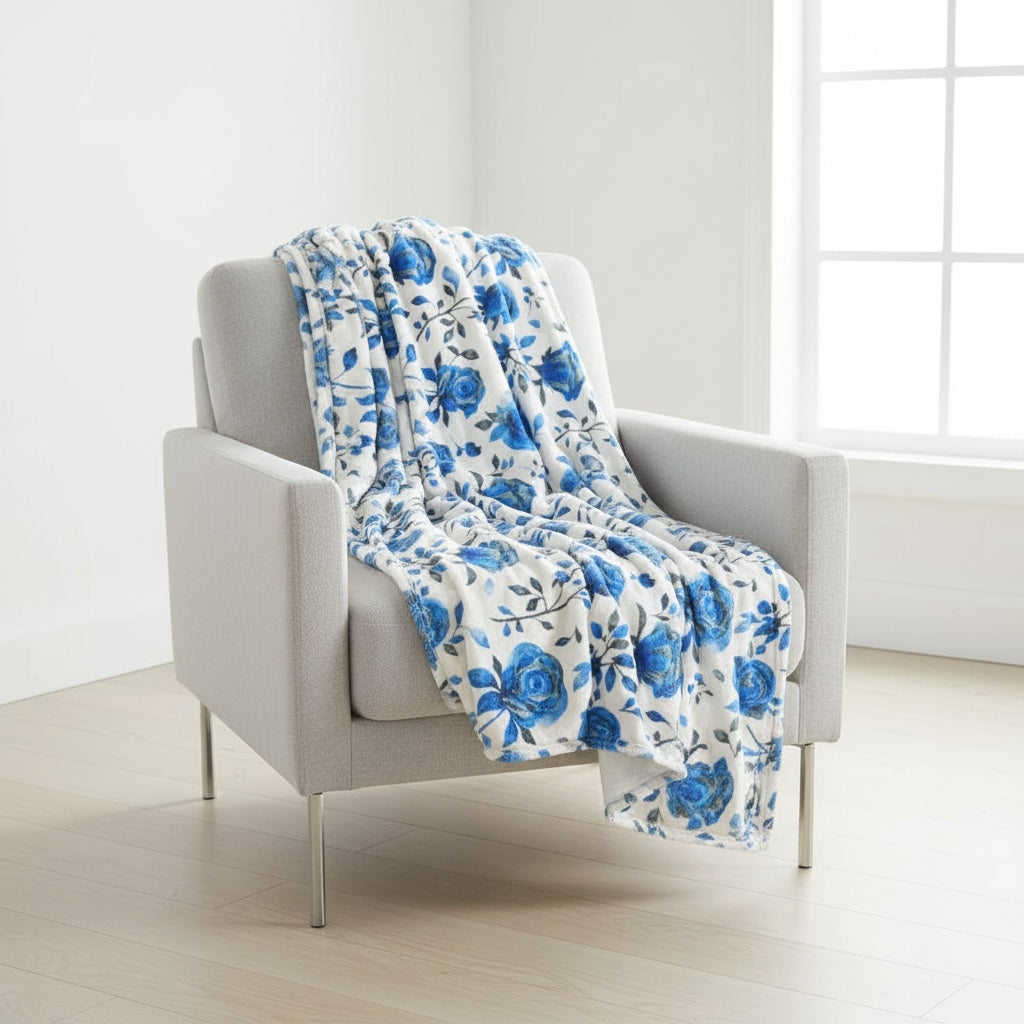 "Blue Line Roses" 60x60” Fleece Cuddle Blanket