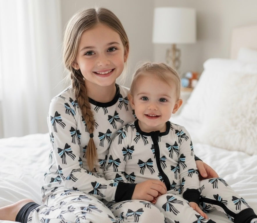 "Blue Line Bows" Comfy Cozies Zip-Up