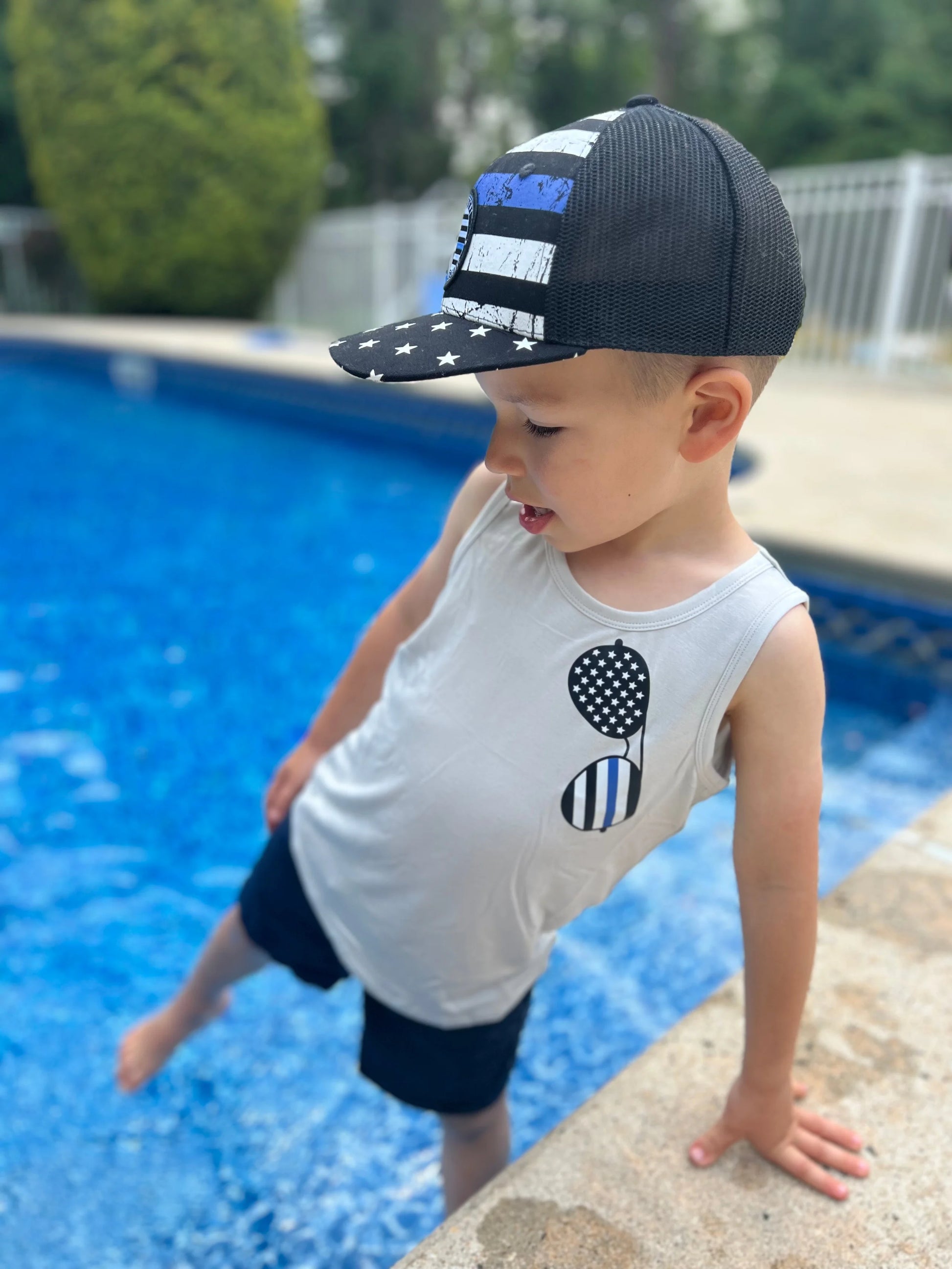 The perfect breathable, comfy tank top featuring Thin Blue Line aviators!