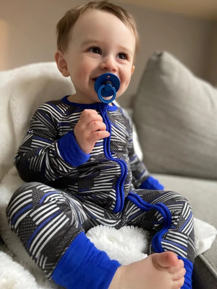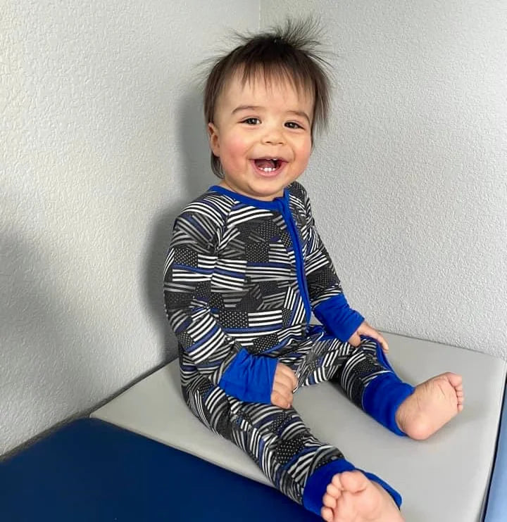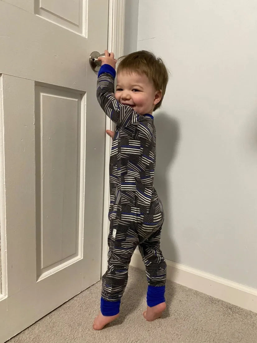 Super soft, comfortable, and adorable! Our unique one of a kind Law Enforcement “Comfy Cozies” Zip-Up will be your child’s favorite pajamas! 95% Bamboo viscose and 5% spandex that is extra soft for comfort and sensitive on skin. Featuring fold-over foot cuffs and mittens, and a double zipper for easy changing! No buttons, snaps, or interior tags!