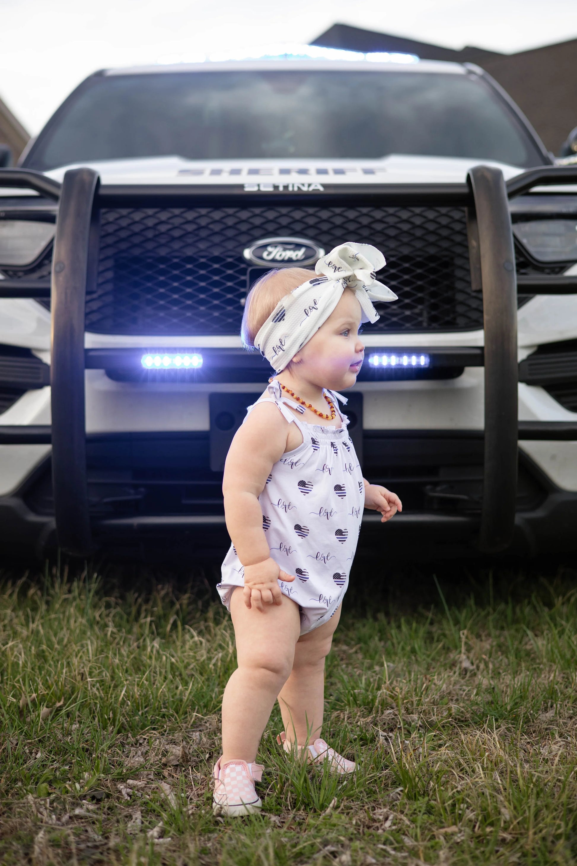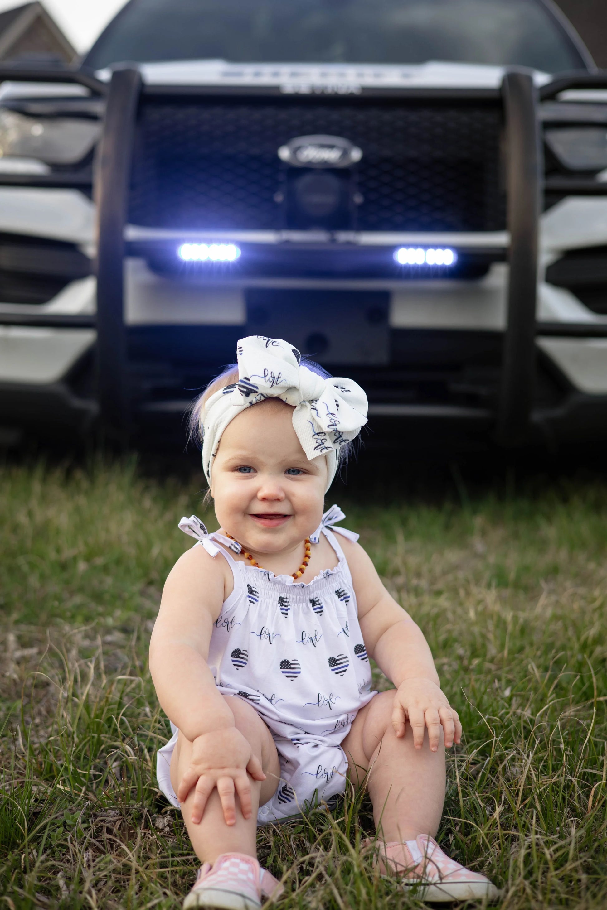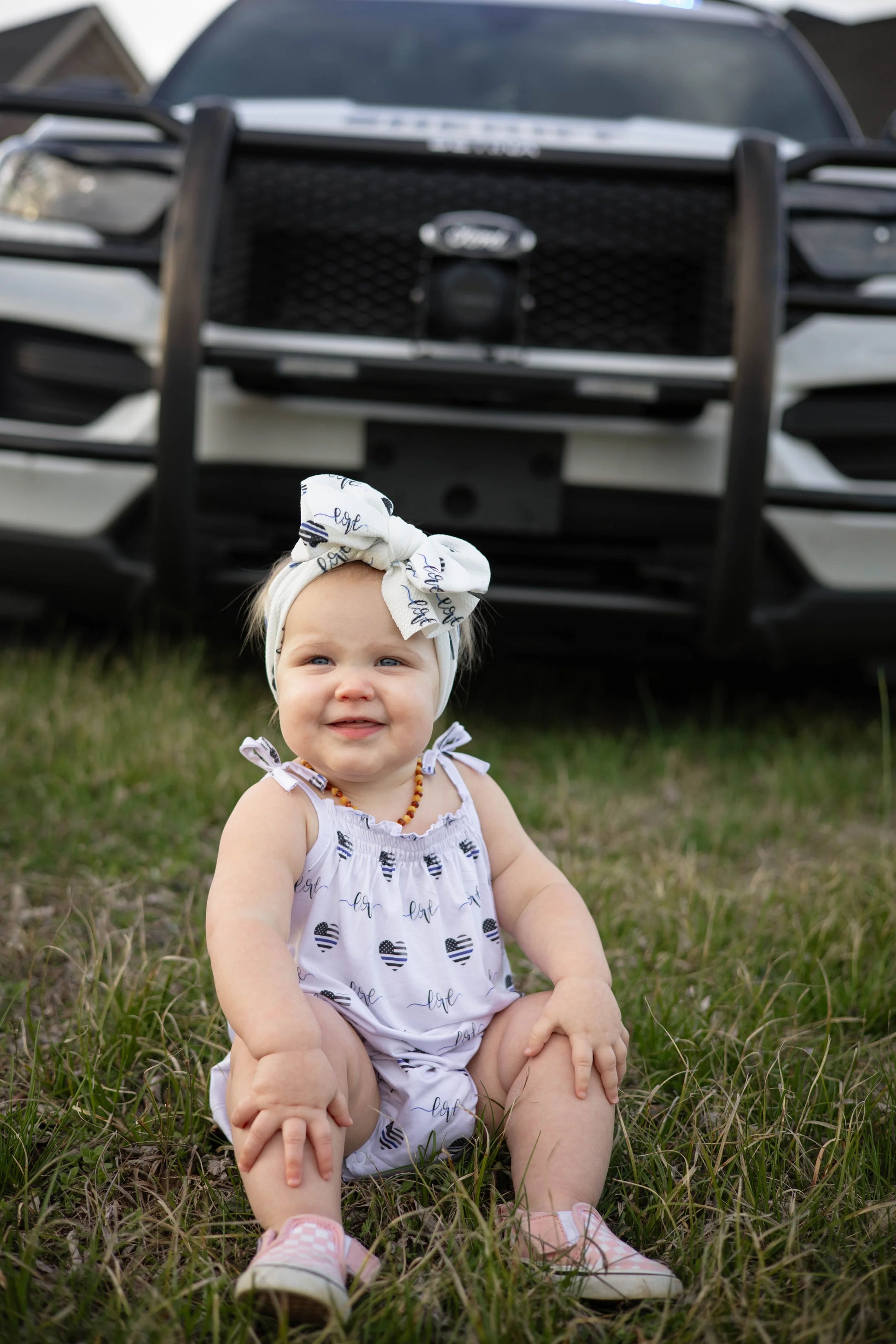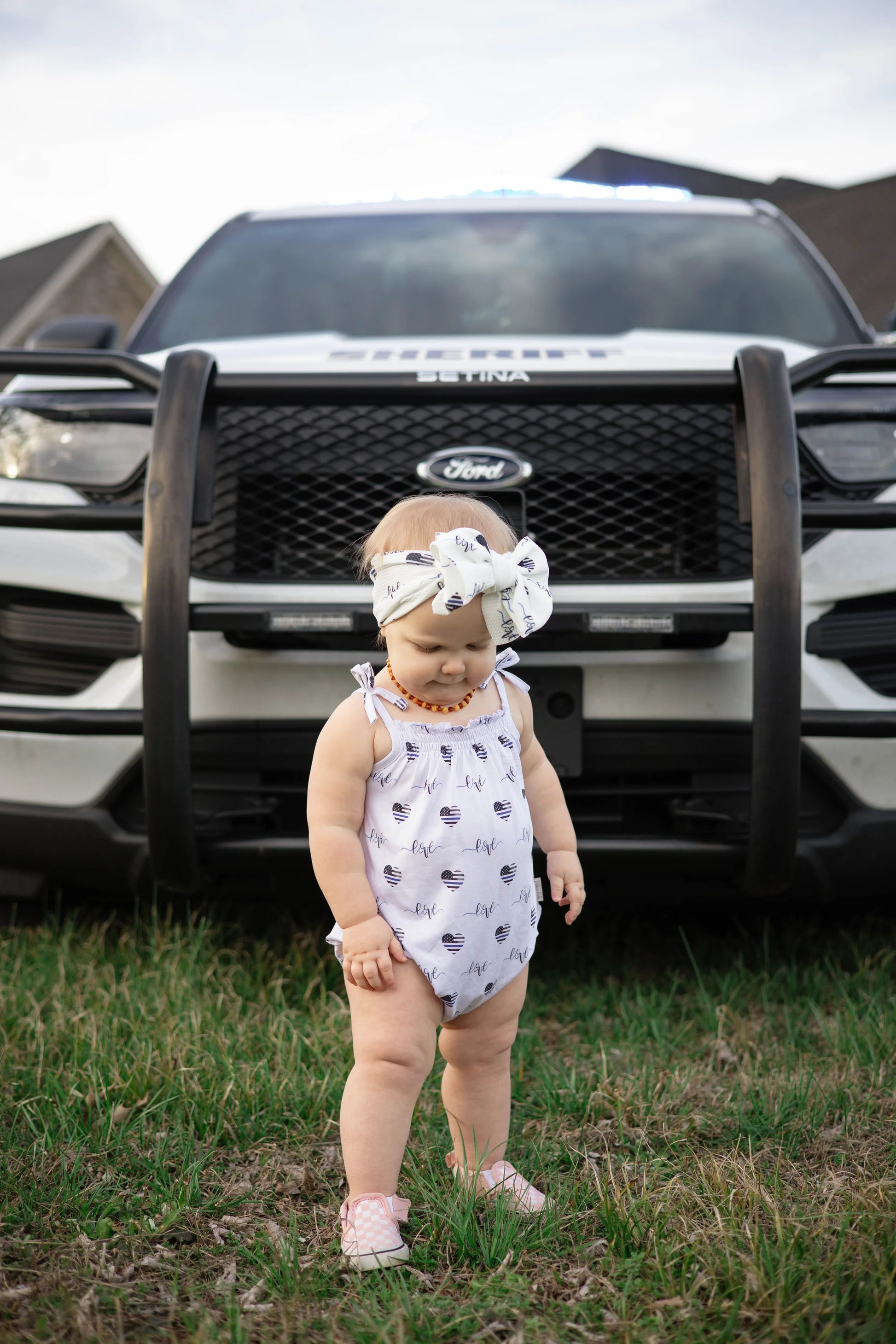 One of the most popular selling prints “Thin Blue Love” is now available in this limited-edition bubble romper!