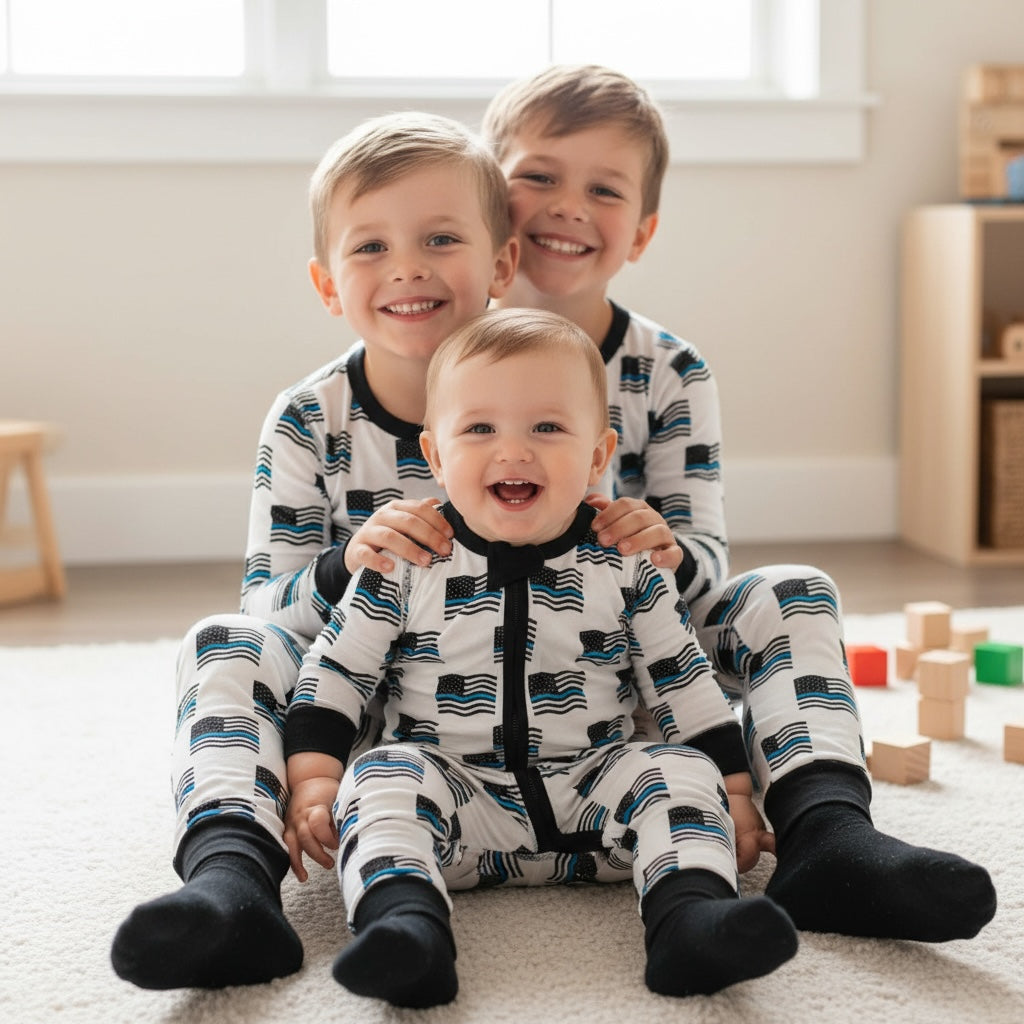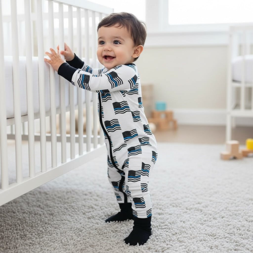 Super soft, comfortable, and adorable! Our unique one of a kind Law Enforcement “Comfy Cozies” Zip-Up will be your child’s favorite pajamas! 95% Bamboo viscose and 5% spandex that is extra soft for comfort and sensitive on skin. Featuring fold-over foot cuffs and mittens, and a double zipper for easy changing! No buttons, snaps, or interior tags!
