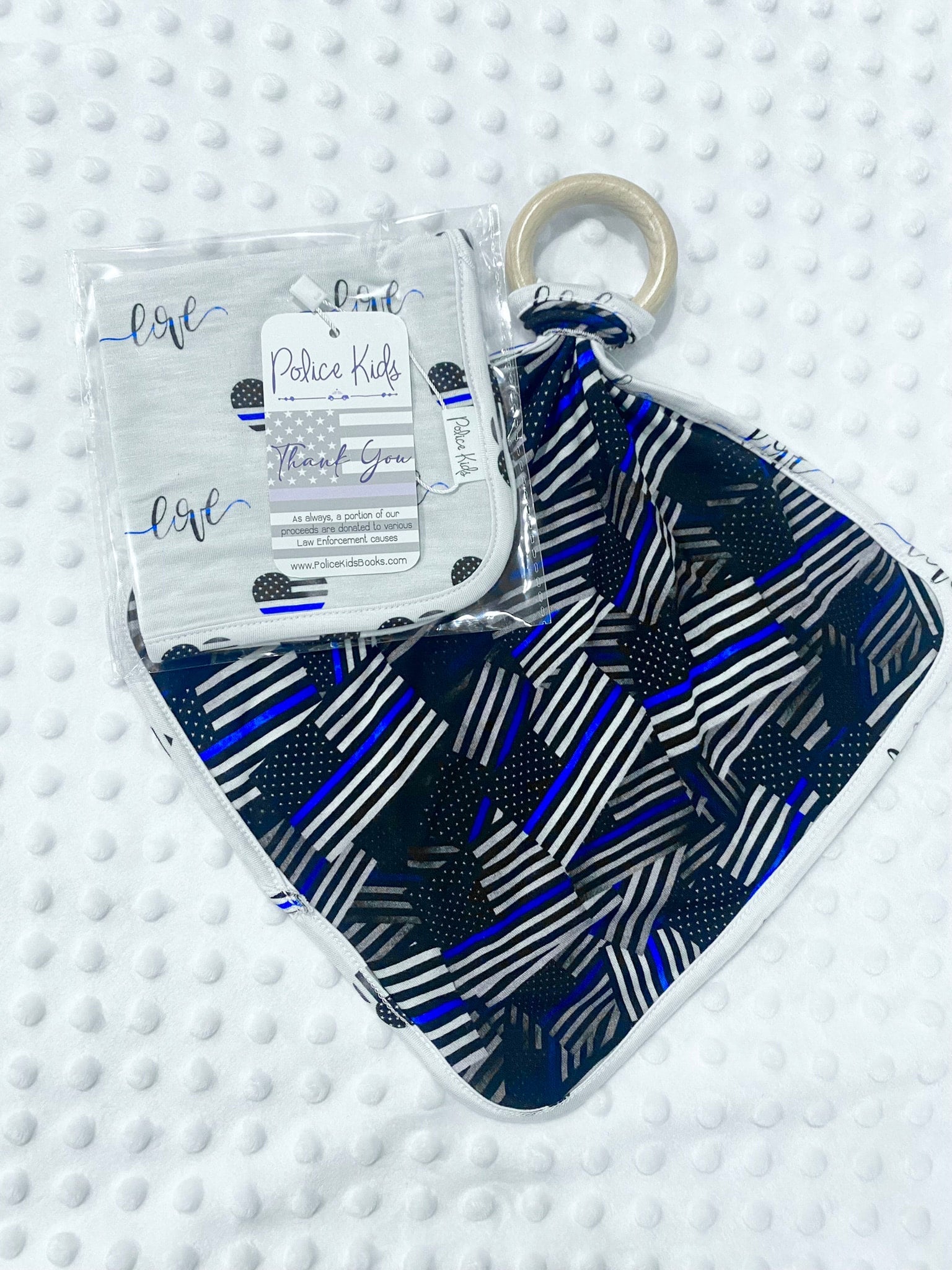 The perfect lovey for your child to snuggle with, carry their favorite pacifier or teether, or use as a security blanket. Double sided in our two signature prints (TBL Flags and Thin Blue Love) - this lovey pairs perfectly with your favorite Comfy Cozies and coordinating bedtime items!
