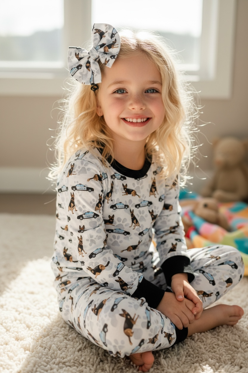 Super soft, comfortable, and adorable! Our unique one of a kind Law Enforcement “Comfy Cozies” Two Piece Set will be your child’s favorite pair! 95% Bamboo viscose and 5% spandex that is extra soft for comfort and sensitive on skin. Long sleeve top with matching pants with no buttons, snaps, or interior tags!