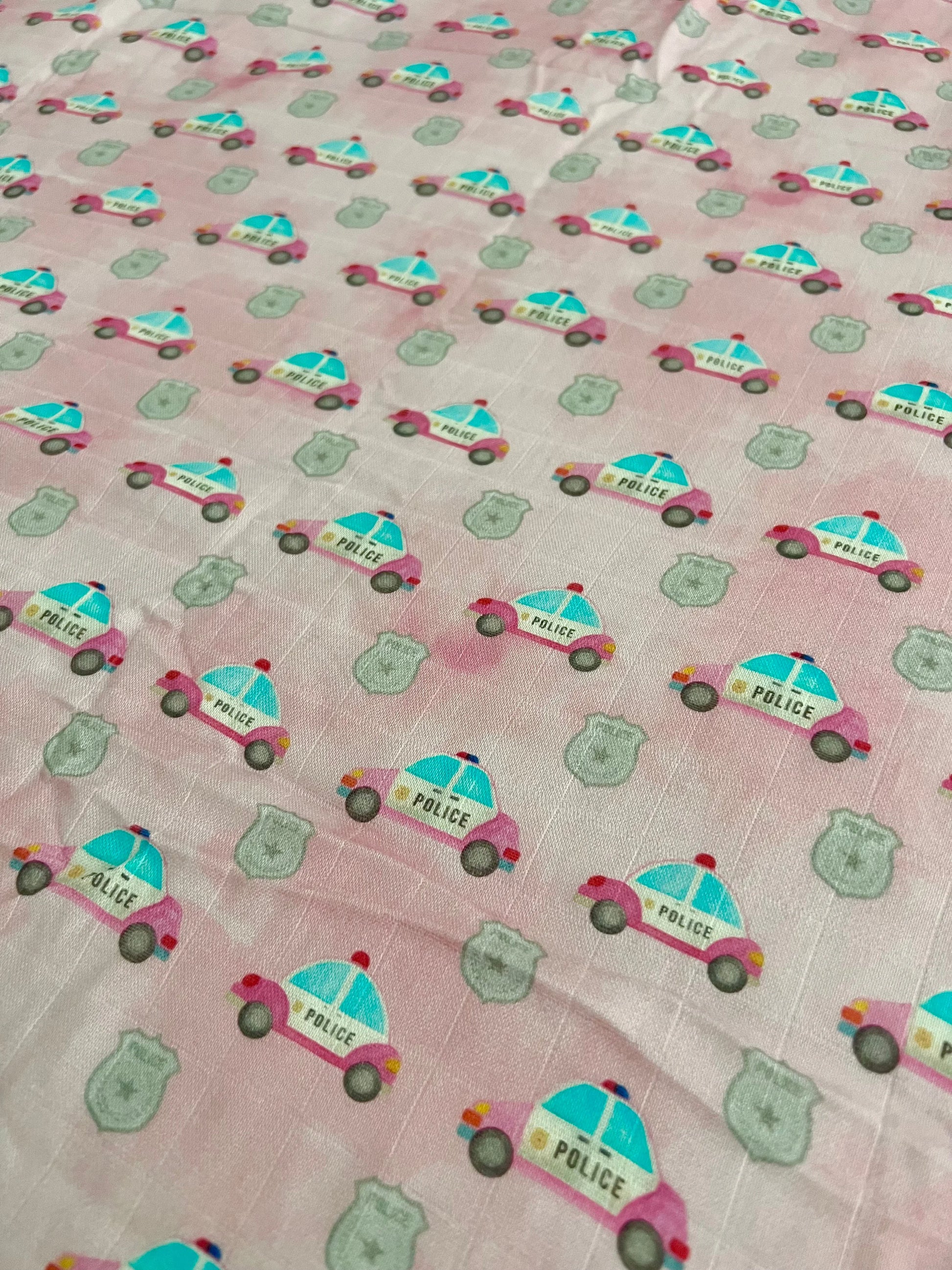 Pink Police Cars and Badges Bamboo Muslin Swaddle