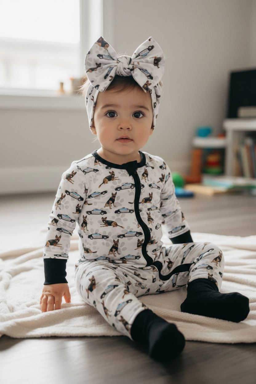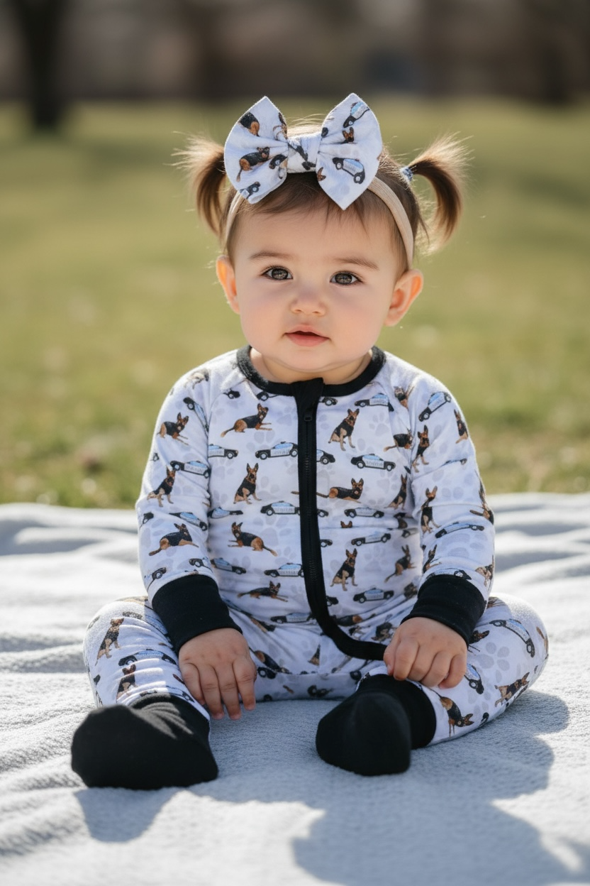 Super soft, comfortable, and adorable! Our unique one of a kind Law Enforcement “Comfy Cozies” Zip-Up will be your child’s favorite pajamas! 95% Bamboo viscose and 5% spandex that is extra soft for comfort and sensitive on skin. Featuring fold-over foot cuffs and mittens, and a double zipper for easy changing! No buttons, snaps, or interior tags!