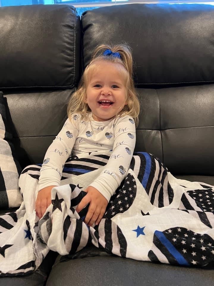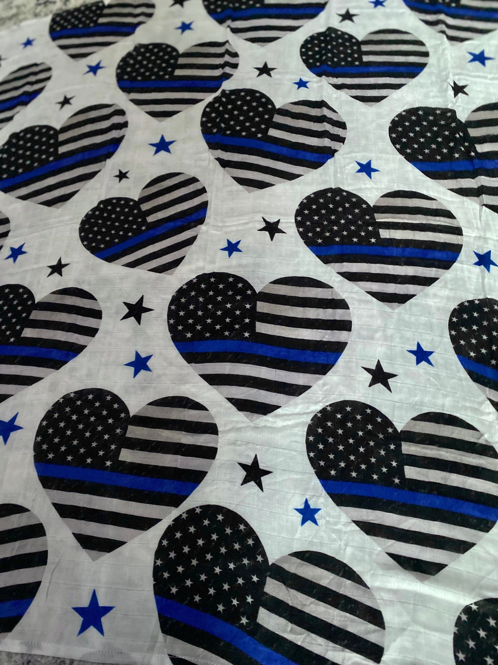 This custom designed Thin Blue Sweet Hearts and Stars Bamboo Cotton Muslin Swaddle Blanket is a must have for Law Enforcement families with little ones!