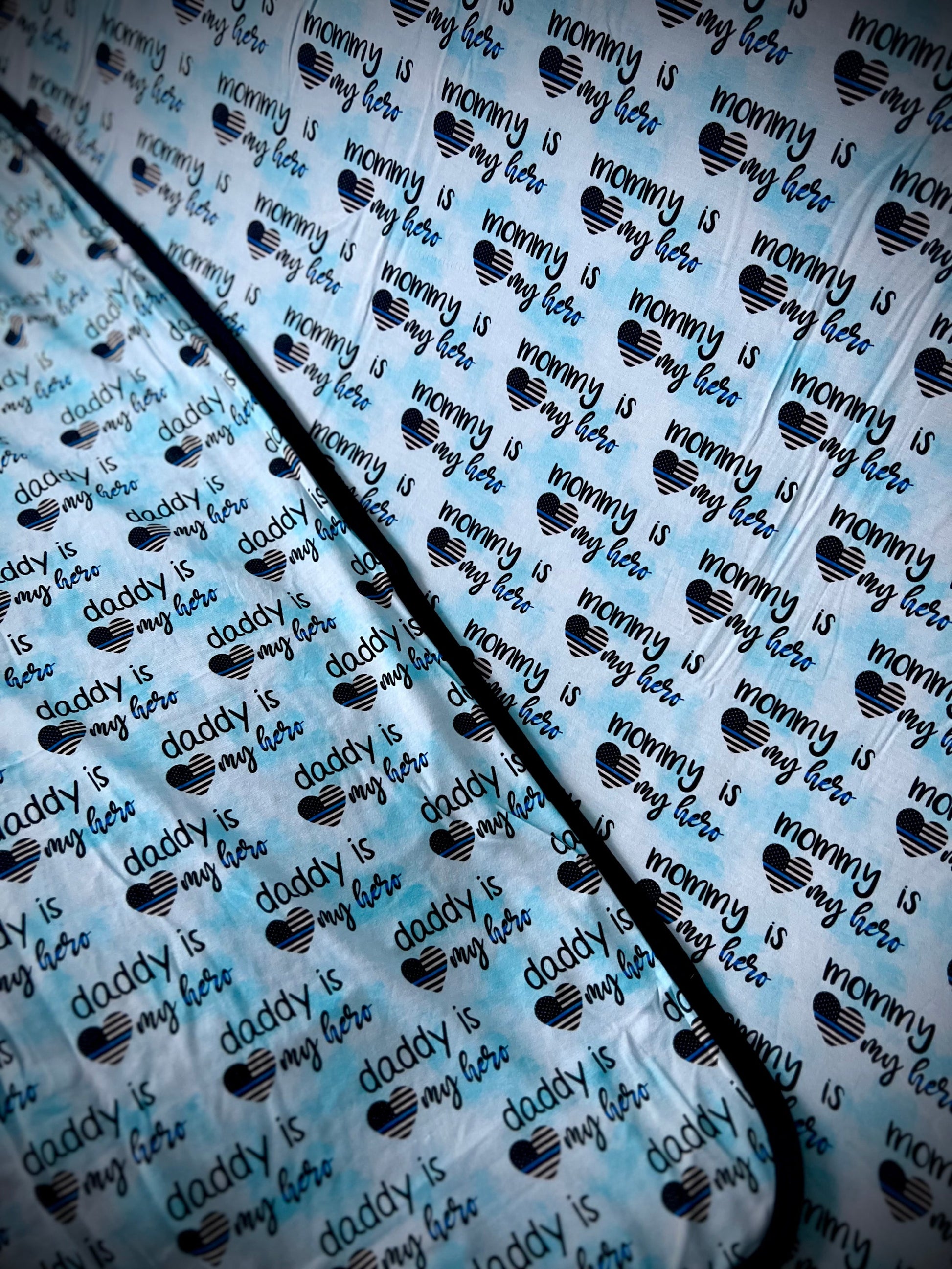 This pattern features the "Daddy’s Little Hero” pattern on one side and “Mommy’s Little Hero” on the other side!